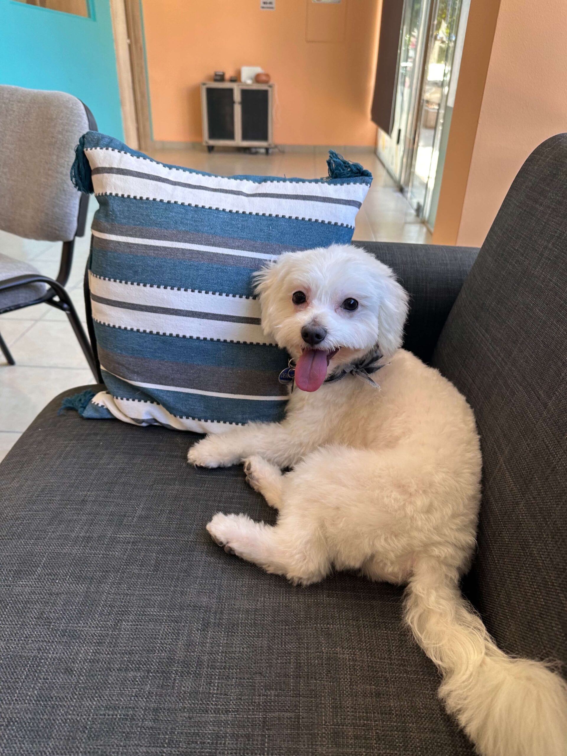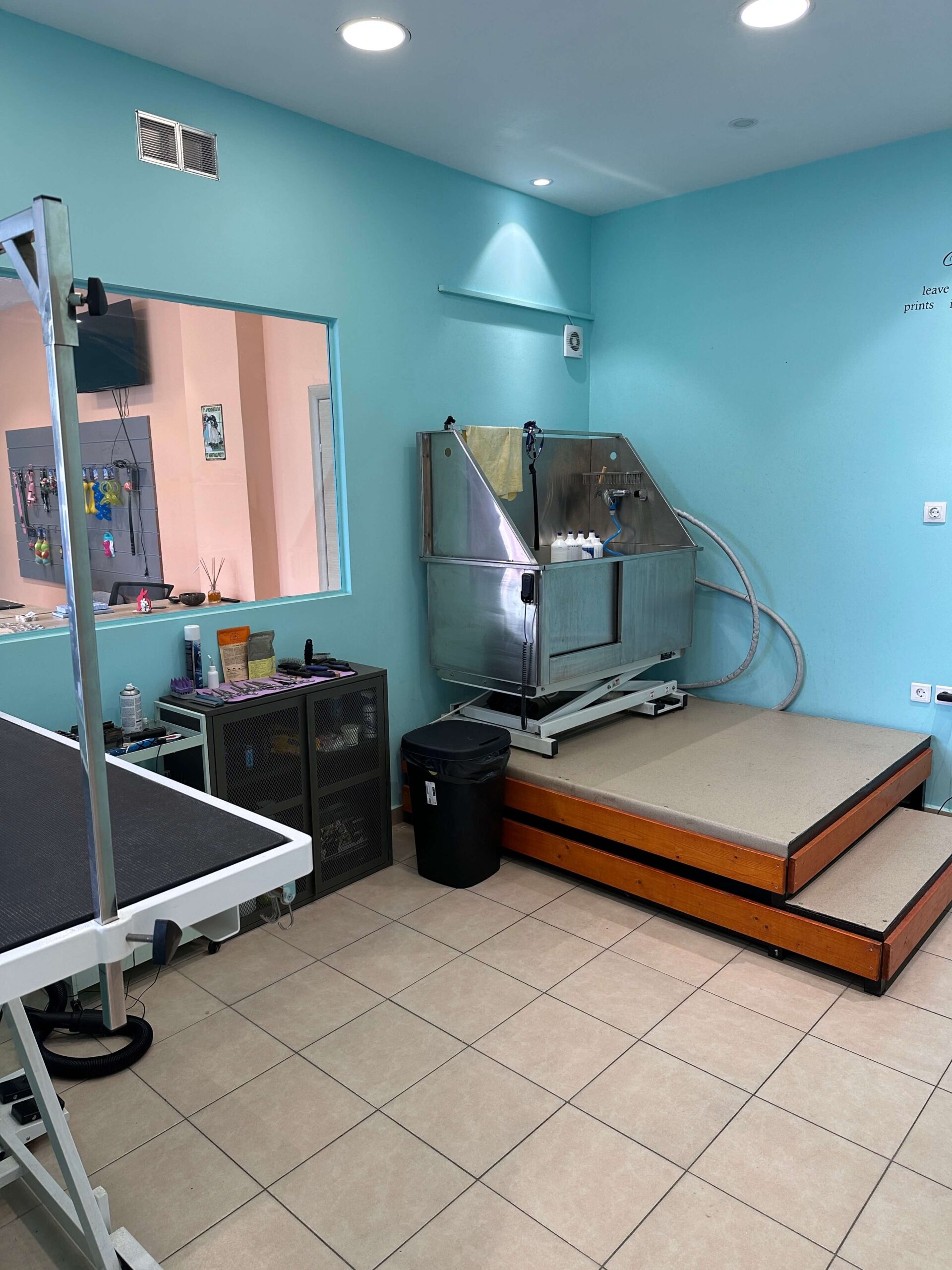 Ο χώρος μας είναι όμορφα διαμορφωμένος, καθαρός και φιλικός. Ενώ περιποιούμαστε τον σκύλο σας, μπορείτε να χαλαρώσετε απολαμβάνοντας έναν καφέ στον χώρο αναμονής.
